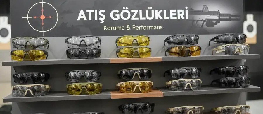 Atış gözlükleri, mermi kovanı ve parça sıçramalarına karşı gözlerinizi korur. Güvenli atış için temel koruyucu ekipmandır.