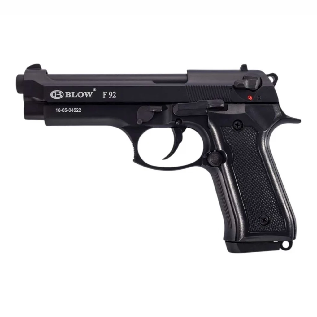 Blow F92 Kurusıkı Tabanca, hem yarı otomatik hem de tam otomatik atış imkanı sunan, sağlam Zamak gövdesiyle üretilmiş bir modeldir. 9 mm kalibreye sahip bu tabanca, yüksek bir 17+1 şarjör kapasitesi sunar. Ayrıca 30+1 şarjörlerle de uyumludur. 1135 gram ağırlığı, 214 mm toplam uzunluğu, 40 mm genişliği ve 141,7 mm yüksekliği ile güçlü bir yapıya sahiptir. Siyah, altın, füme, saten, mat krom ve parlak krom gibi farklı mekanizma & gövde rengi seçenekleri bulunmaktadır.