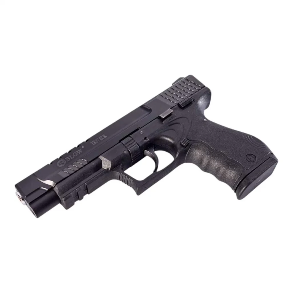 Blow TR 17 02 K (Kanallı) Kurusıkı Tabanca, yarı otomatik bir kurusıkı tabancadır ve dayanıklı polimer gövdesi ile belirgin kanallı kızağı ile dikkat çeker. 9 mm kalibreye sahip bu model, yüksek bir 17+1 şarjör kapasitesi sunar. Ayrıca 30+1 şarjörlerle de uyumludur. 970 gram ağırlığı, 216,55 mm toplam uzunluğu, 33,3 mm genişliği ve 139 mm yüksekliği ile dengeli bir kullanım sunar. Siyah rengiyle şık bir görünüme sahiptir. İşlemeli ve delikli mekanizma seçenekleri de mevcuttur.