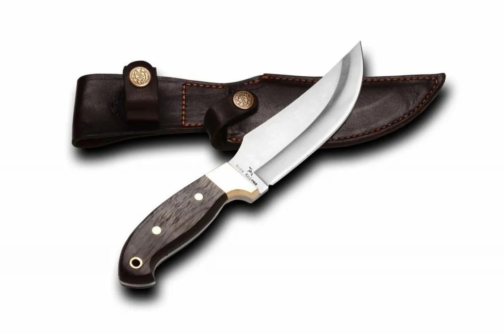 Bu bıçak, güvenli taşıma ve kullanım için 1. sınıf deri kılıf ile birlikte gelir. Deri kılıf, hem bıçağın korunmasını sağlar hem de estetik bir görünüm kazandırır.
