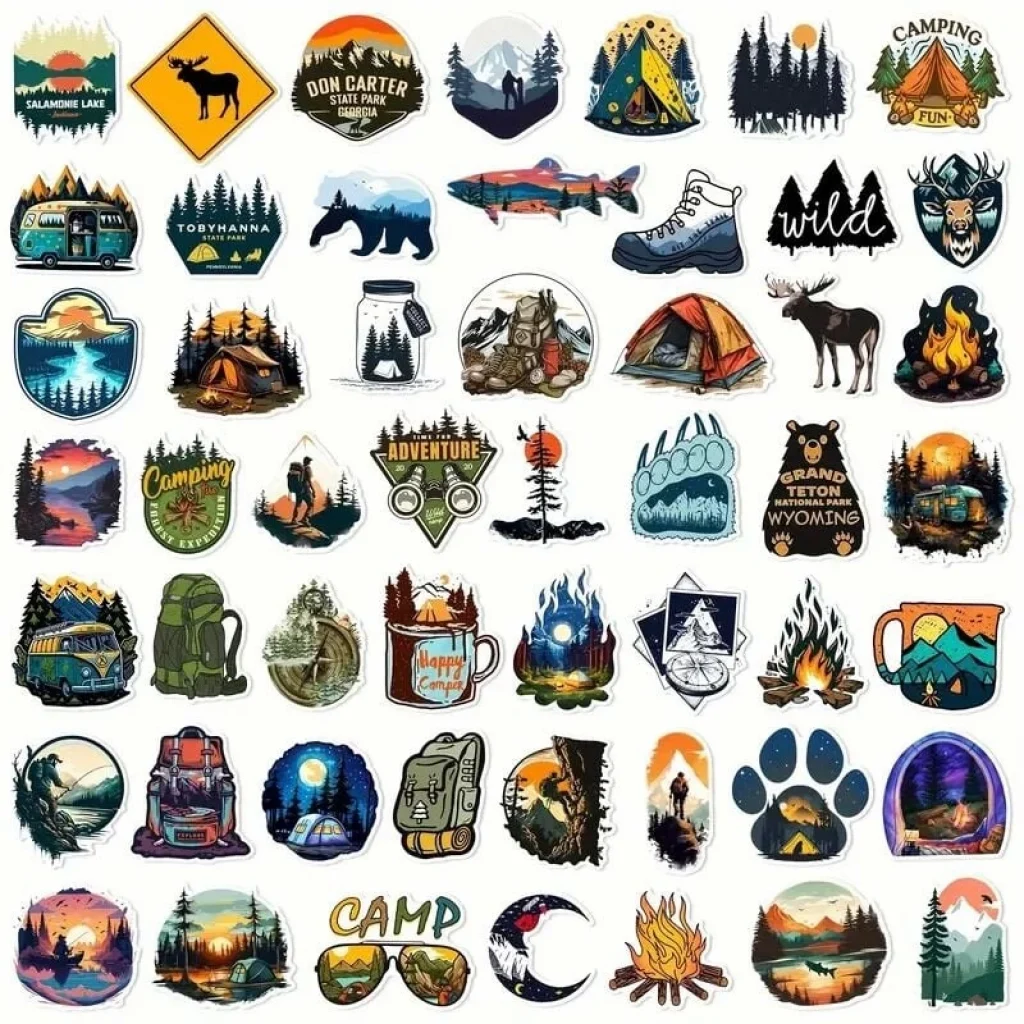 Dış Mekan Kamp Vinil Stickerları Canlı Görünüm - 10 Adet