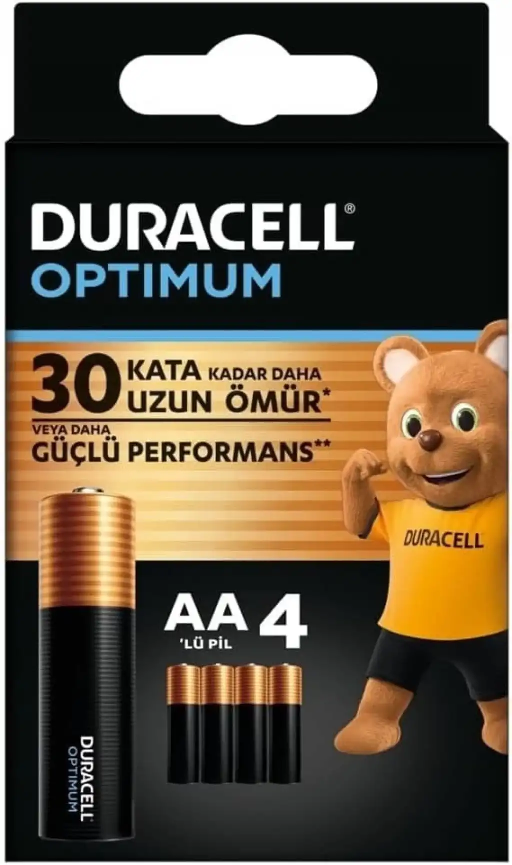 Yeni Duracell Optimum. En Yüksek Performanslı AA Alkalin pilimiz Duracell'in bugüne kadarki en yenilikçi teknolojisi, yepyeni Duracell Optimum alkalin pil bazı cihazlarda¹ 30 kata kadar Daha Uzun Ömür, veya diğer cihazlarda² Daha Güçlü Performans sunan yeni bir katot sistemine sahiptir.