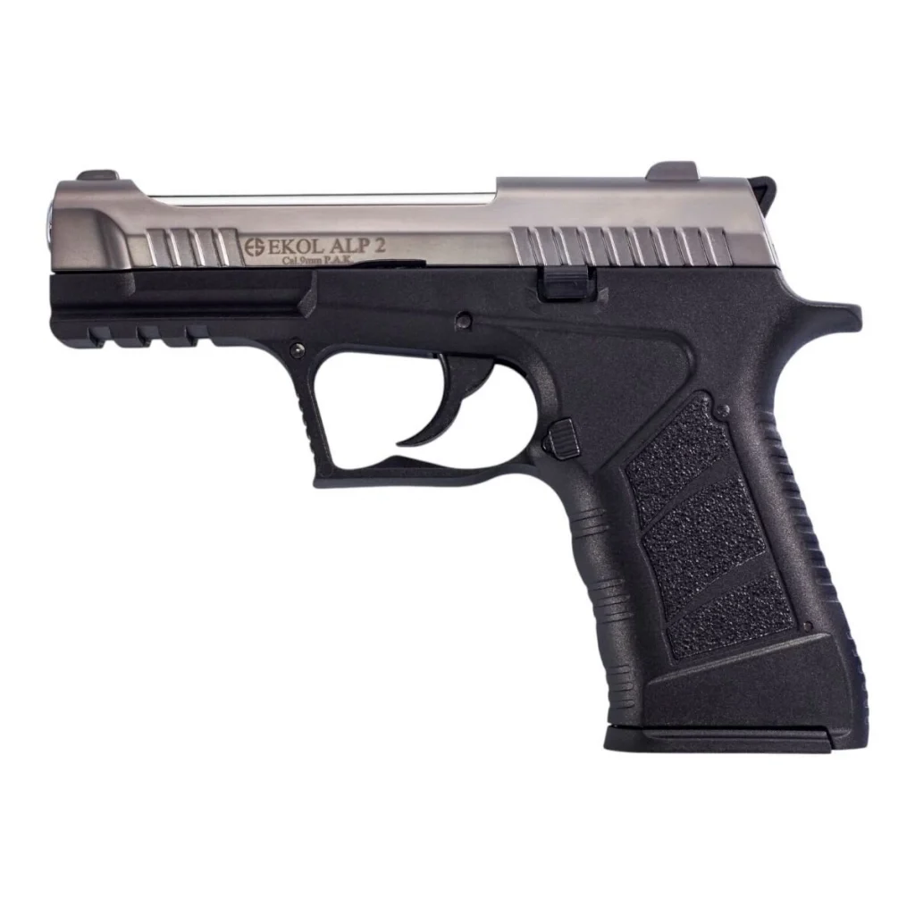 Ekol Voltran Alp 2 Kurusıkı Tabanca, yarı otomatik bir kurusıkı tabancadır. rengiyle kompakt ve modern bir tasarıma sahip olan bu model, 9 mm kalibreye sahiptir. Hem 14+1 hem de 25+1 şarjörlerle kullanılabilir. 25'li şarjör ayrıca satılmaktadır ve bu modele uyumludur. 172 mm toplam boyu, 29 mm genişliği ve 122 mm yüksekliği ile taşıması kolay bir yapı sunar. Boş ağırlığı 580 gramdır.