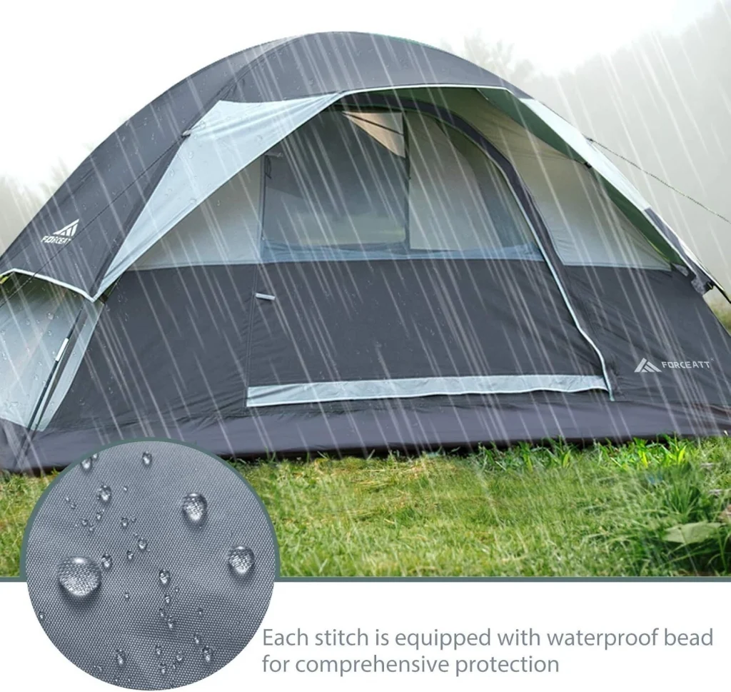 Forceatt 2 Kişilik Kamp Çadırı, çift kapılı tasarımı ile mükemmel havalandırma sağlar. Su geçirmez ve rüzgar geçirmez yapısı, her türlü hava koşulunda kuru ve güvende kalmanızı sağlar. Kolay kurulumu, sadece 3 dakikada çadırınızı kurmanıza olanak tanır. Hafif yapısı, taşımayı kolaylaştırır. Yüksek yoğunluklu tül, sivrisineklerden korunmanızı sağlar.