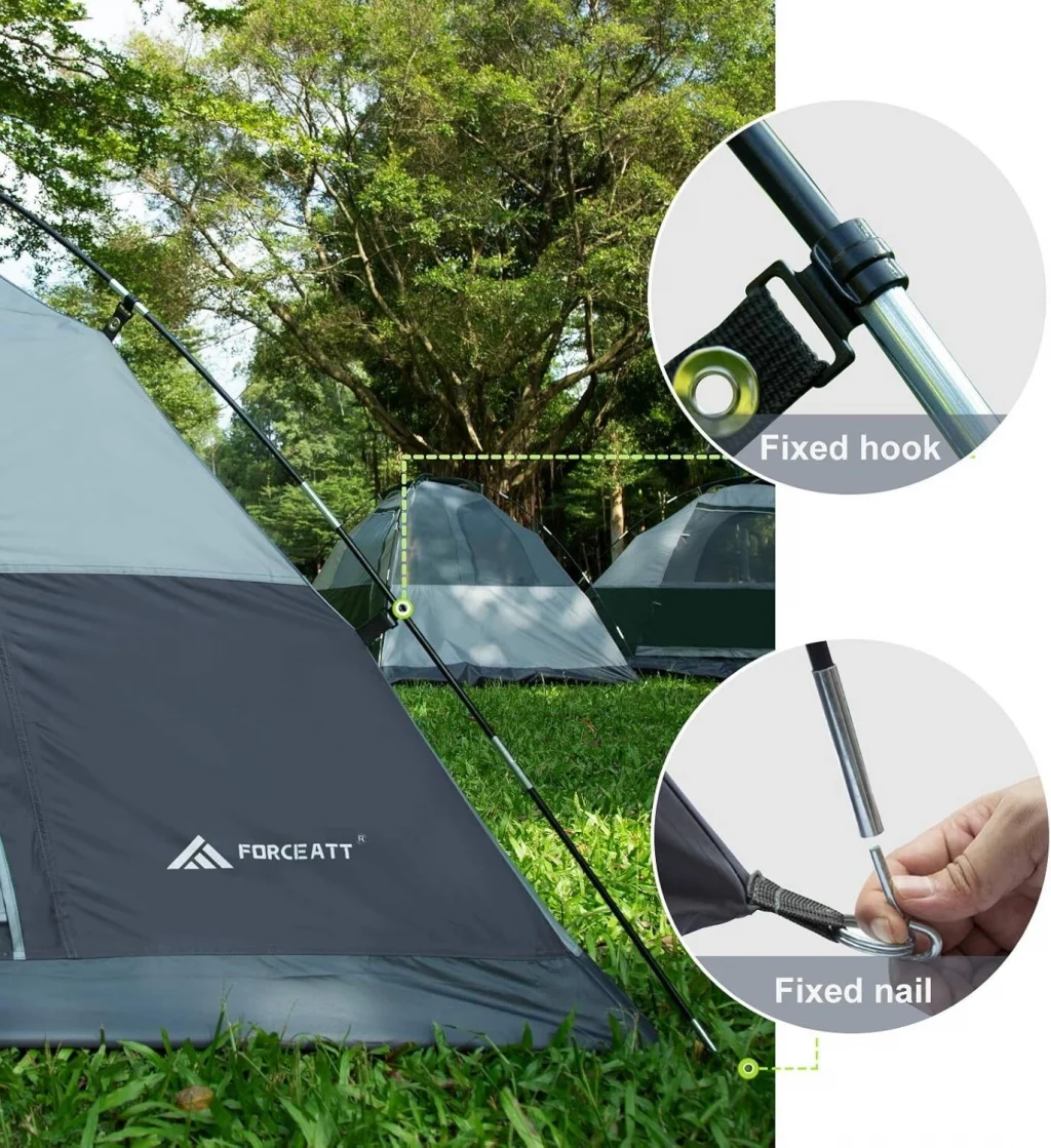 Forceatt Çift Kapılı 2 Kişilik Kamp Çadırı, doğa maceralarınızda size eşlik edecek güvenilir ve pratik bir üründür. Dayanıklı yapısı, havalandırma özellikleri ve kolay kurulumu ile her türlü ihtiyacınızı karşılar.