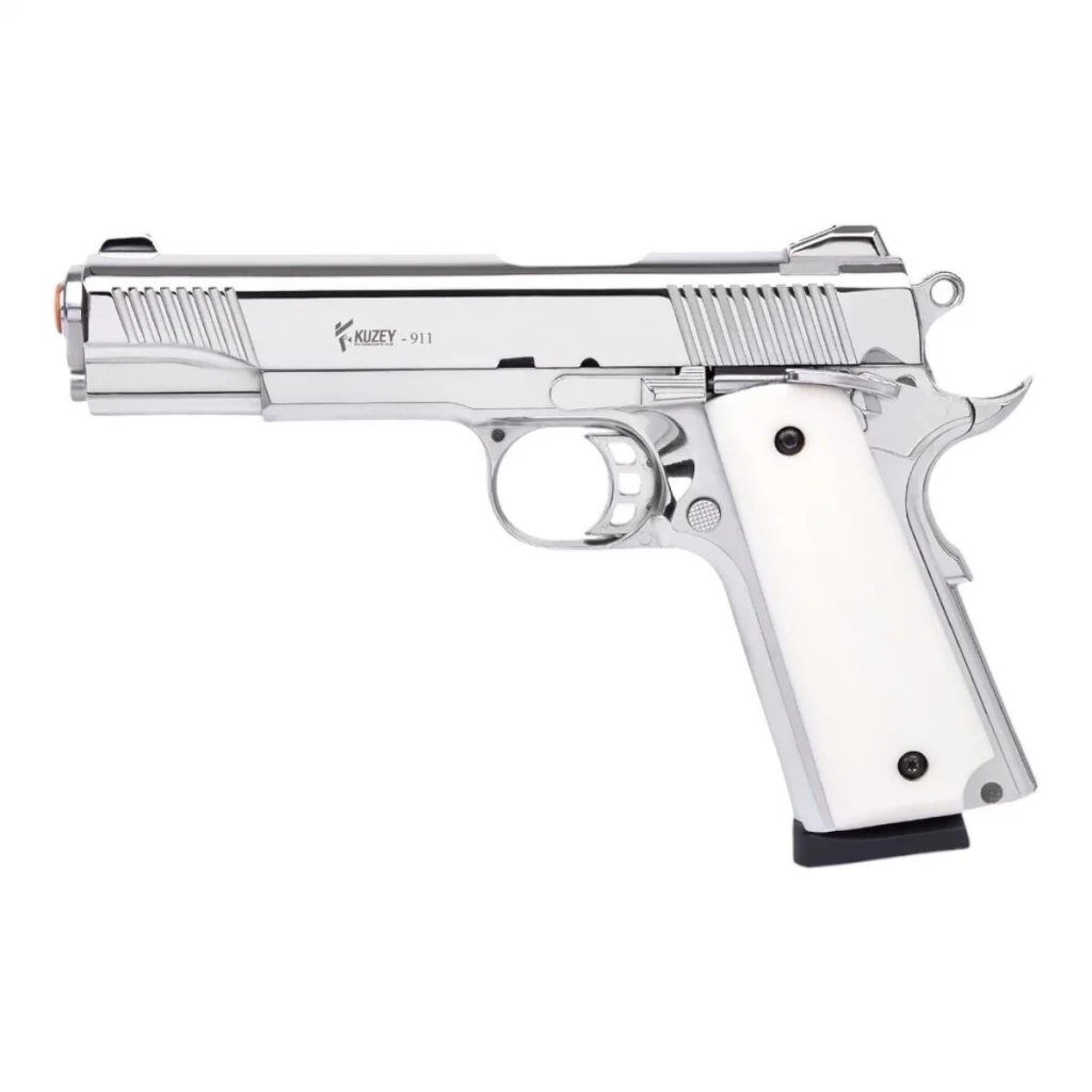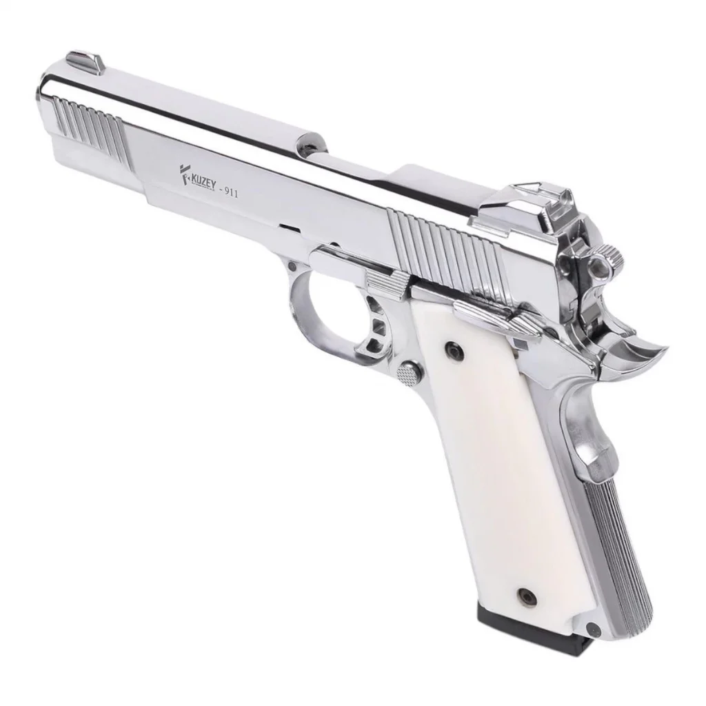 Şıklığı ve performansı bir arada arayanlar için ideal bir seçenek olan Kuzey 911 Sedef Kabze Parlak Krom kurusıkı tabanca, hem görünümü hem de özellikleriyle beklentilerinizi karşılayacaktır. 9+1 şarjör kapasitesi ve güvenli mekanizması ile keyifli bir kullanım sunar.