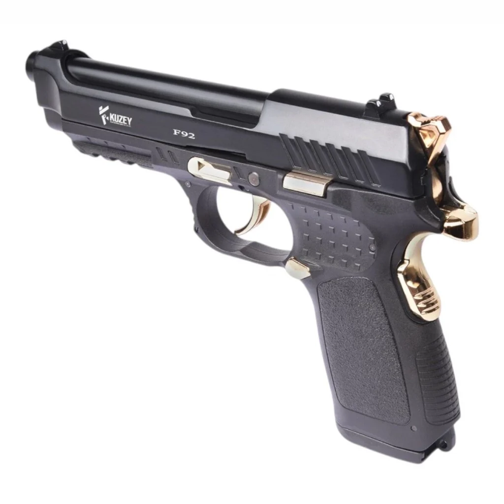 Kuzey F92 Kurusıkı Tabanca, yüksek şarjör kapasitesi ve yarı otomatik mekanizması ile dikkat çeken bir modeldir. 9 mm P.A.K. kalibreye sahip bu tabanca, etkileyici bir şekilde 18+1 şarjör kapasitesi sunarak uzun süreli atış imkanı sağlar. Çift hareketli tetik sistemi ve ateşleme pim emniyet sistemi, hem kullanım kolaylığı hem de üst düzey güvenlik sunar.