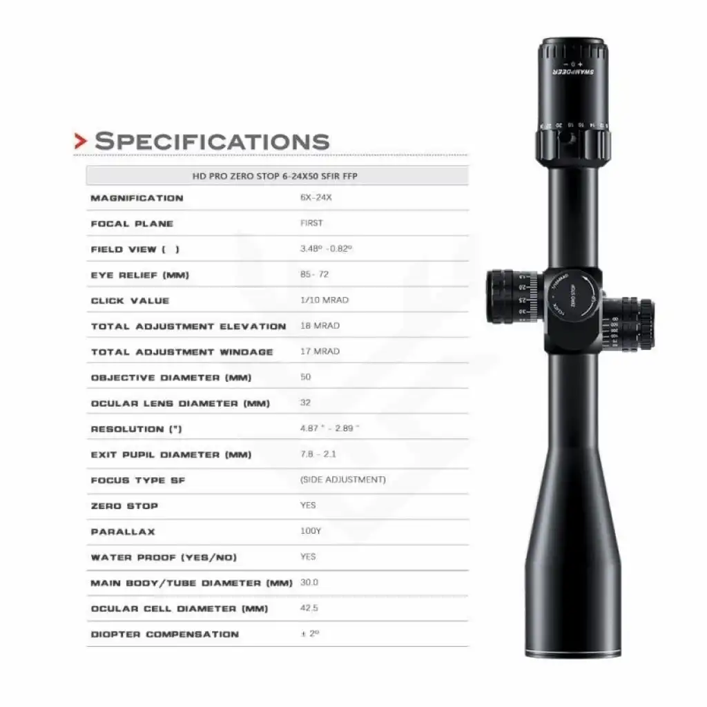 Swampdeer HD PRO Zero Stop 6-24X50 SFIR FFP-A Tüfek Dürbünü ile atış deneyiminizi profesyonel bir seviyeye taşıyın. Zorlu koşullar ve uzun mesafeler için ideal bir tercihtir. Şimdi keşfedin!