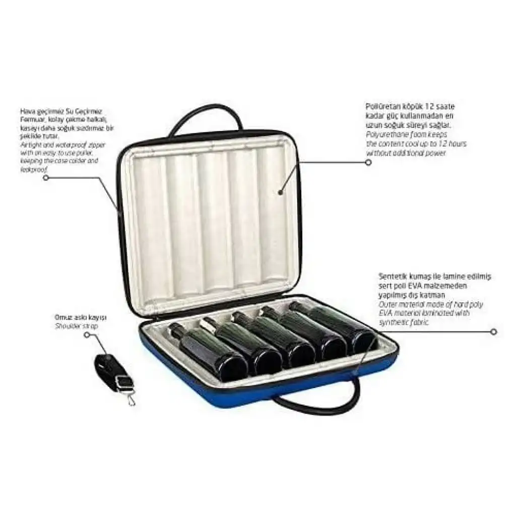 Sealed Air Şirketi tarafından temin edilen patentli poliüretan köpükten yapılmış yalıtım malzemesi. Poliüretan köpük, 8 saate kadar herhangi bir enerji kaynağı kullanmaksızın en uzun süreli soğuk muhafaza sağlar. Üstün kaliteli sert EVA kopolimer çanta, kırmızı, mavi, yeşil, kahverengi, siyah gibi herhangi bir renkte ya da müşteri talebine göre üretilebilir. Öğle yemeklerinde, plajda, piknikte, parkta, balık tutarken, maç öncesi pikniklerde, yürüyüşte, kamp yaparken veya bahçenizde kullanım için mükemmel bir yol arkadaşıdır.