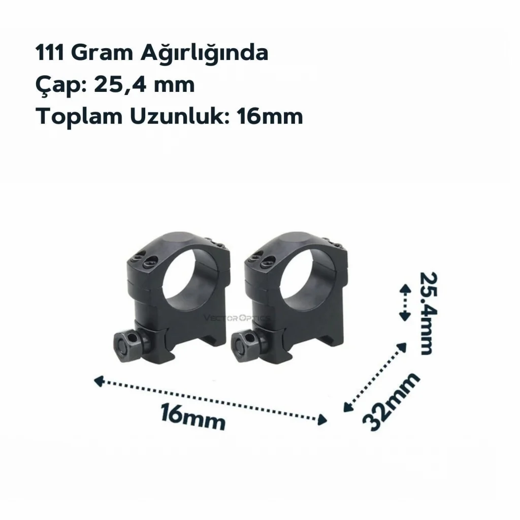 25,4 mm (1") Çap, Halka başına 4 Vida, Picatinny Weaver Montajı.