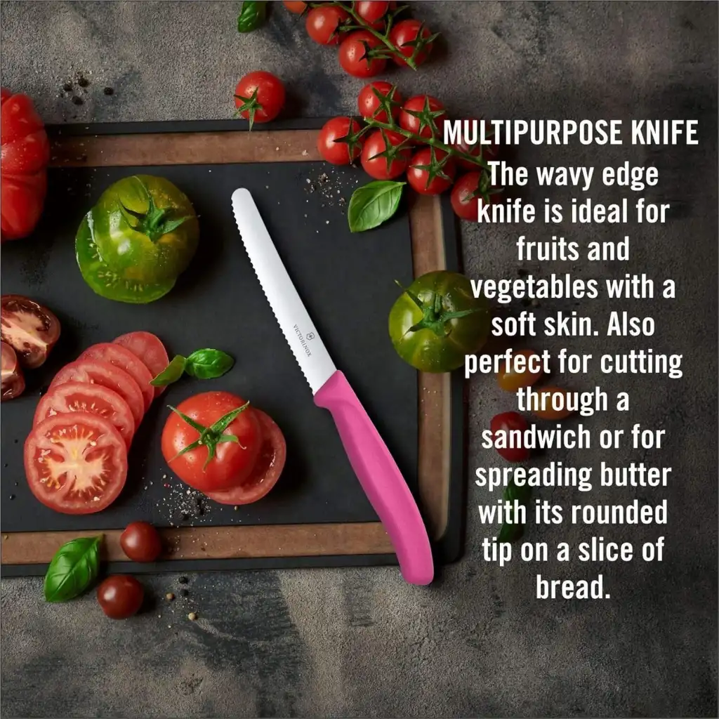 İsviçre yapımı olan bu özel bıçak, yumuşak sebze, meyve ve diğer yiyecekleri kesmek için tasarlanmıştır. Yüksek kaliteli malzemesi ve keskinliğiyle mutfaktaki işlerinizi kolaylaştırır.