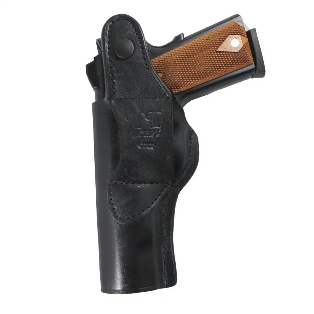 YT Hobby Deri Tabanca Kılıfı, üstün kalite ve el işçiliği ile üretilmiştir. 1. sınıf vegetal deri kullanılarak, yetkin ustalar tarafından el işçiliği ile imal edilmektedir. Silahınız için özel olarak tasarlanmış bu kılıf, maksimum uyumluluk ve koruma sağlar. Silahınızın paslanmasını ve terden etkilenmesini önler. Hızlı çekişe uygun takviyeli çıtçıt mekanizması ve ilave maşa yardımıyla bel içinde taşıma kolaylığı sunar. Namlu ağzı açık tasarımı, farklı tabanca modelleriyle uyum sağlar.