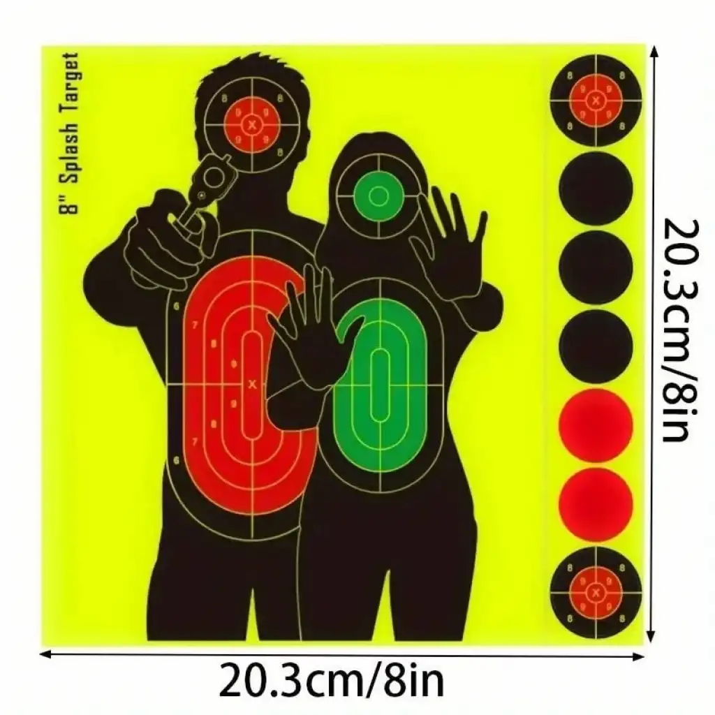 Bu hedef kağıtları, hem profesyonel hem de amatör atıcılar için tasarlanmıştır. Antrenmanlarınızda daha etkili geri bildirim alarak isabet oranınızı artırabilirsiniz. Tabanca, tüfek veya okçuluk ekipmanları ile kullanılabilir.