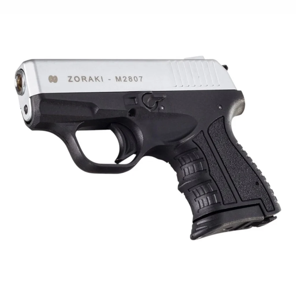 Zoraki M2807 8mm Kurusıkı Tabanca, ultra kompakt boyutları ve hafif yapısıyla öne çıkan, tek hareketli (single action) yarı otomatik bir modeldir. Alt butonla kolayca şarjör çıkarma imkanı sunar. Polimer gövdesi sayesinde son derece hafiftir ve taşıması oldukça pratiktir.